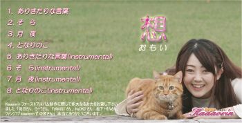 令和8年1月24日 ファーストCDアルバム「想(おもい)」リリース! 1.ありきたりな言葉 2.そ ら 3.月 夜 4.となりのこ (New) 5.ありきたりな言葉(instrumental) (New) 6.そ ら(instrumental) (New) 7.月 夜(instrumental) (New) 8.となりのこ(instrumental) (New)